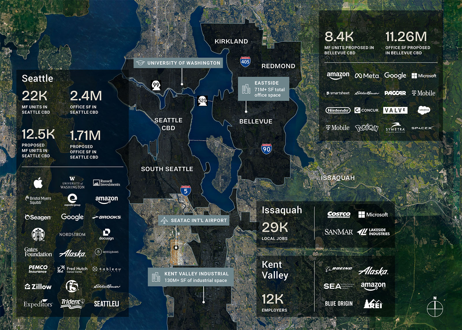 Numerous access points to SR 520, I-405, and the new Light Rail Transit Center, which offers a multitude of routes from the Eastside and Seattle.